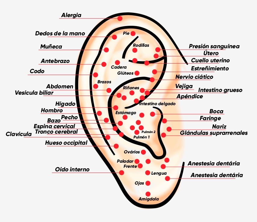 Es la estimulación de los puntos específicos de la oreja para aliviar dolores o tratar diversos problemas físicos o psicológicos como, por ejemplo: ansiedad, migraña, obesidad o contracturas musculares